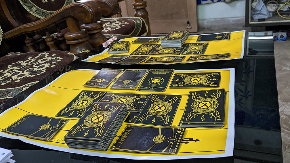 Glitch went through a lot of iterations, with balancing issues at card level. I tested the game first with a single person (my opponent duelist) to establish a smooth game flow.