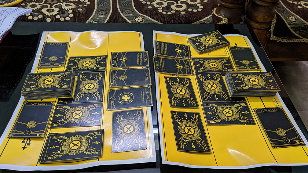 Playtested the game for balancing the various card power levels, abilities, counter systems and game flow with a smaller group at first. I scaled the playtesting to a larger group of (40 people) after the first version was produced. Also, built an entire narrative (story and event) for the larger playtesting session.